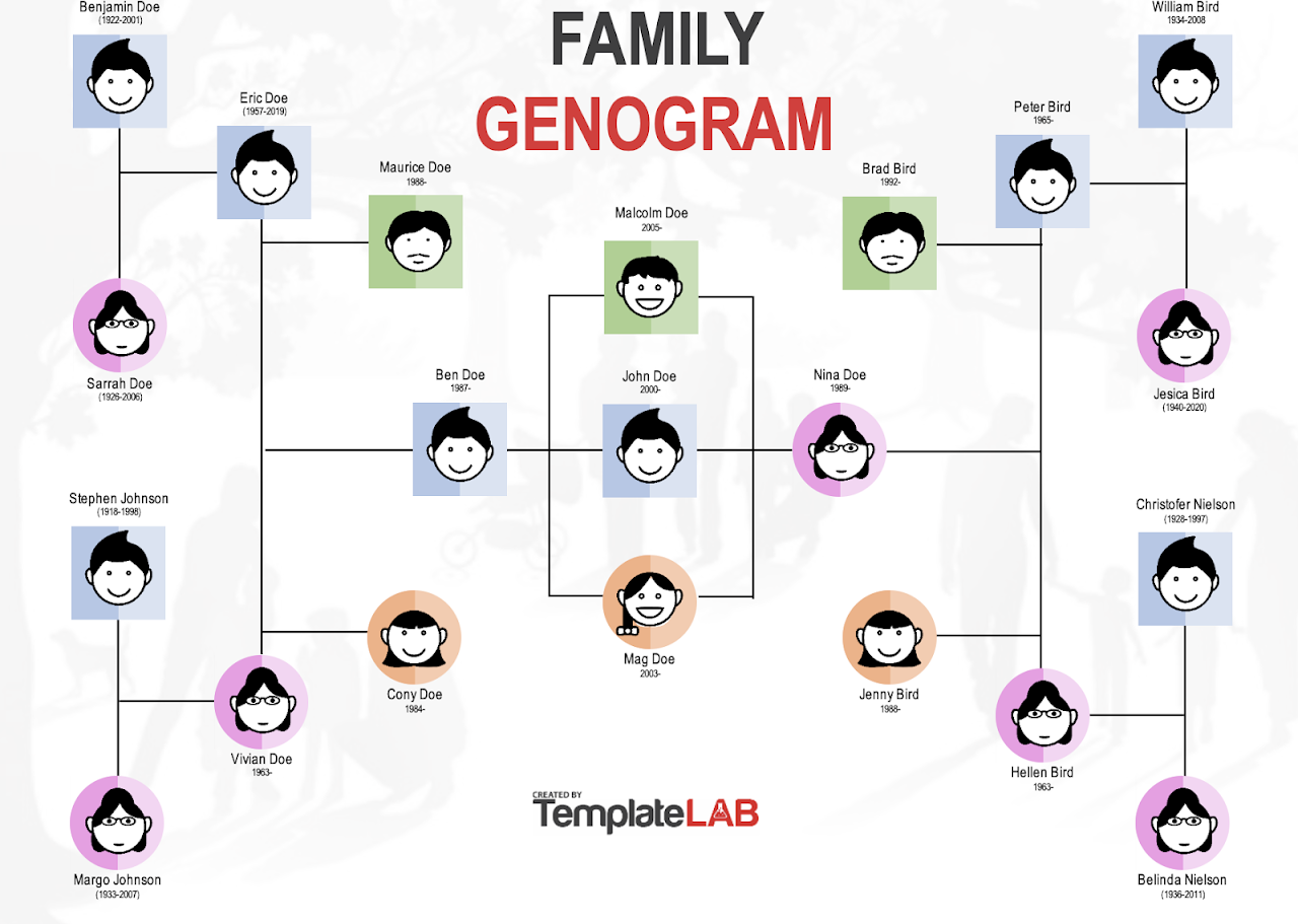 Squares and circles are traditional shapes used in genograms where squares are men and circles are women. You can see an example below. However, kids may want to pick out shapes, pictures or drawings for each person. They can then either copy them or cut them out and glue them to their paper. Teens may want to map out their family, including their grandparents, great-grandparents, aunts, uncles, and cousins. Then, each person can draw or discuss their relationship with each relative. Invite them to create a line or picture representing the connection with each family member. There is no right or wrong answer since everyone will have different experiences with family members. When everyone is finished, talk about each person’s drawings and ask who they would like to be closer to. End by praying for the family members